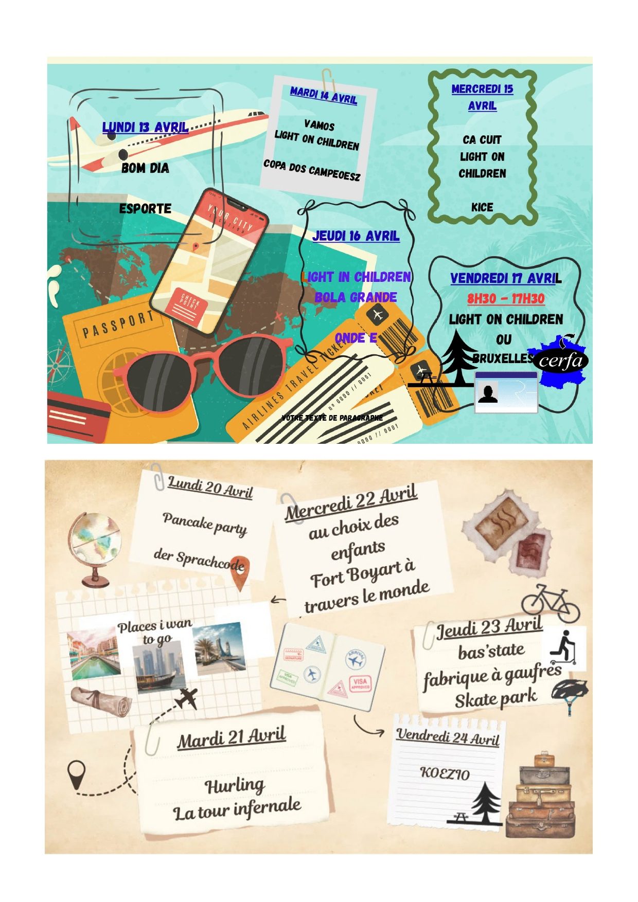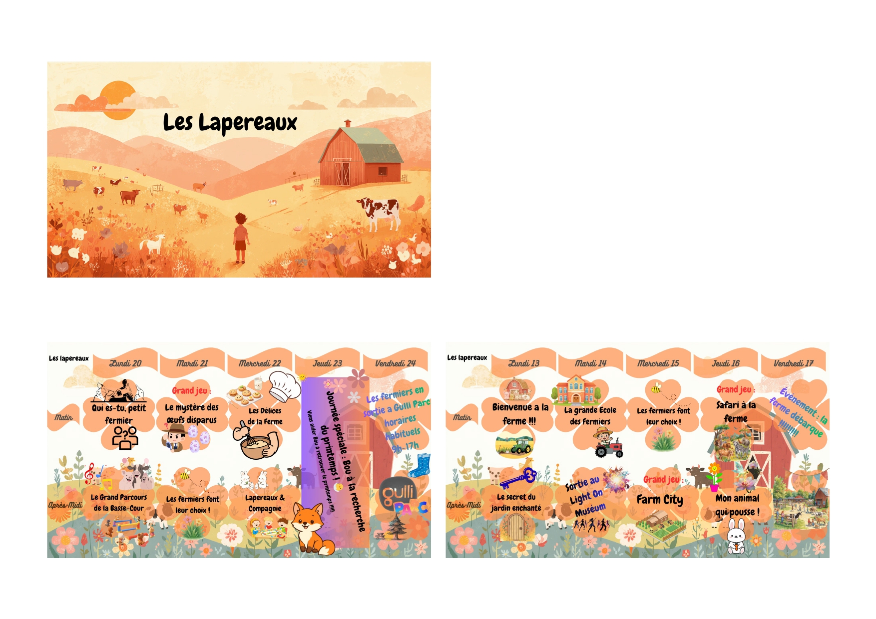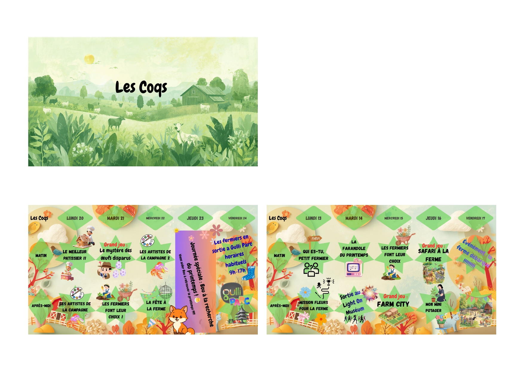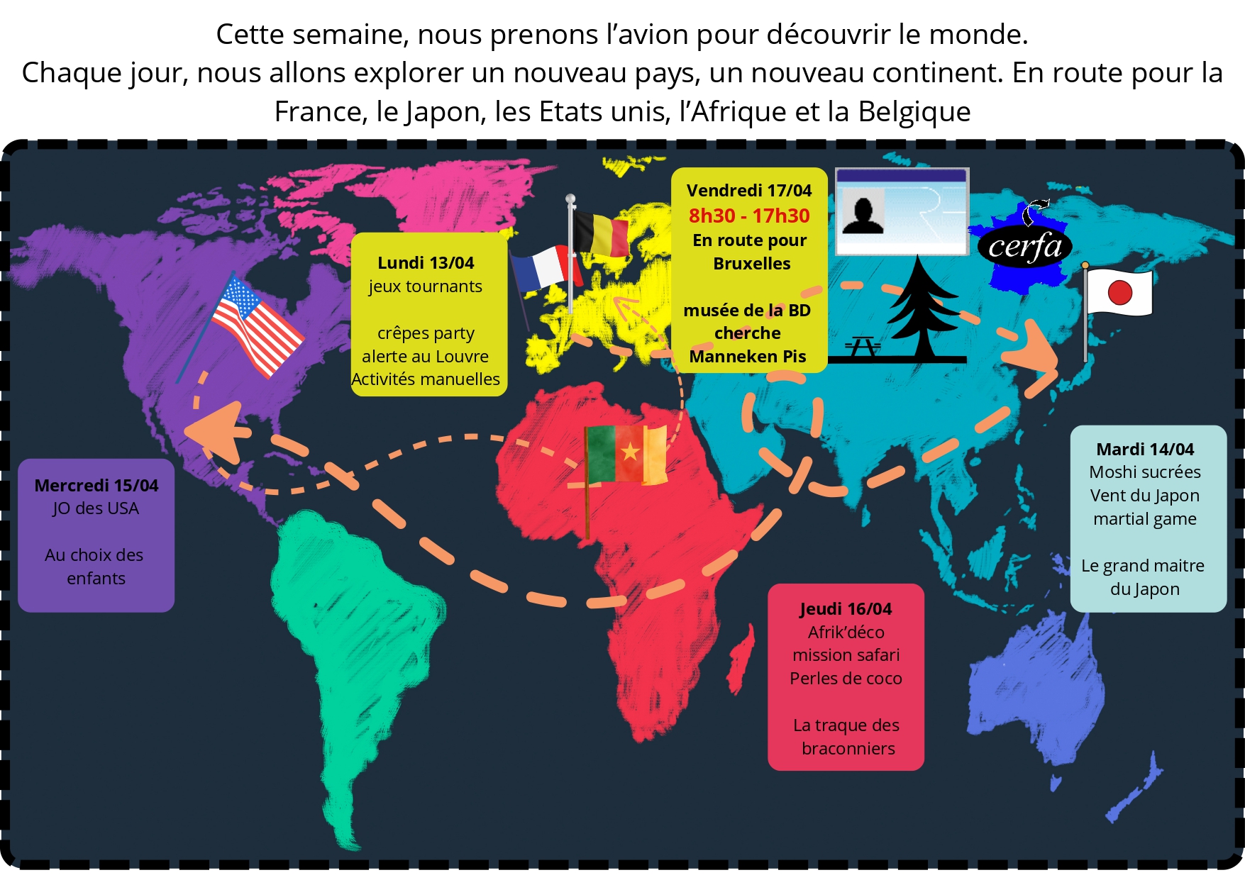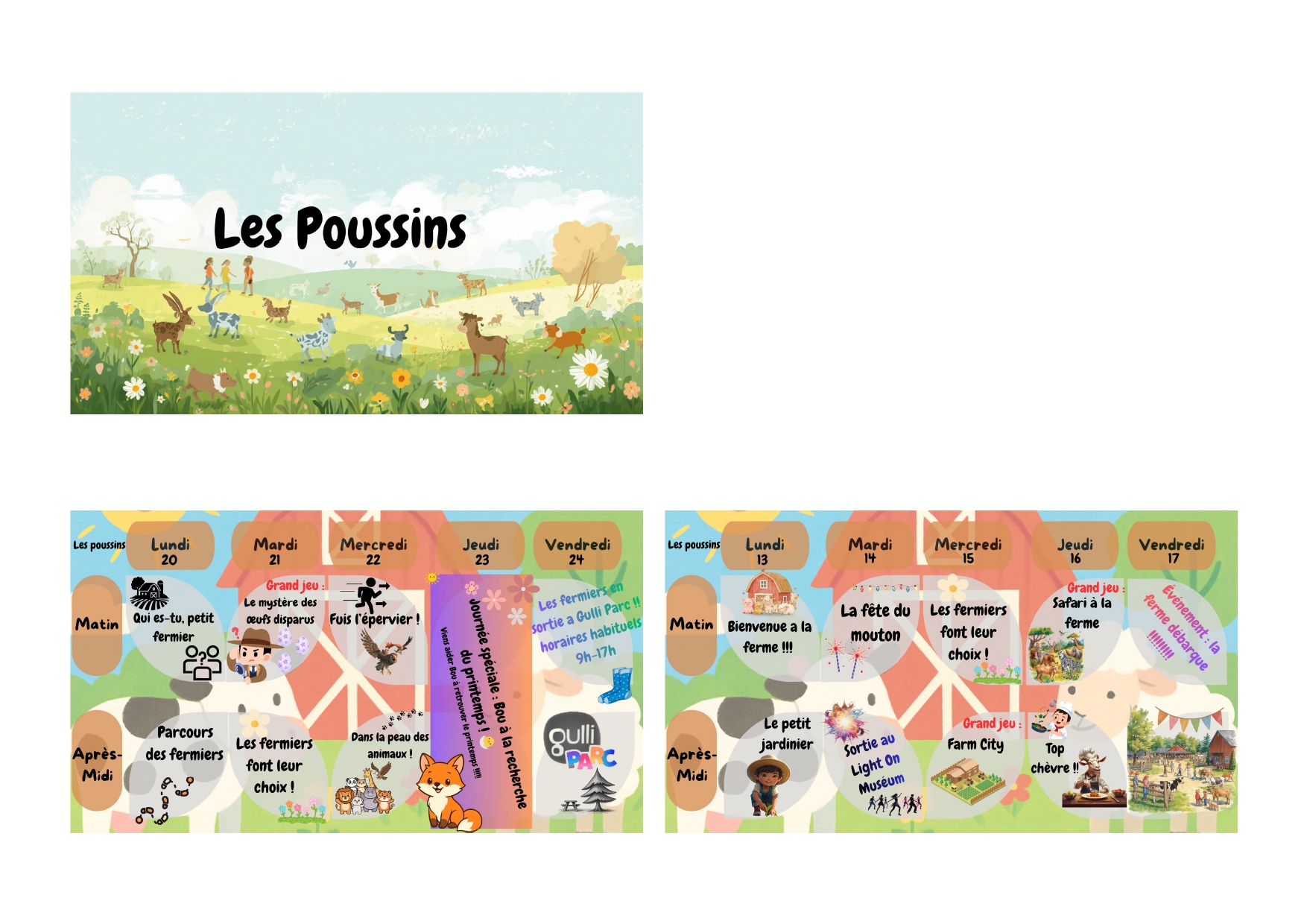 Retrouvez le planning le matin à l’entrée lors de l’accueil.