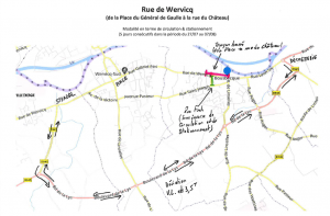 Les riverains des rues de Wervicq, des bords de Lys, du Maréchal Foch, du château, du clos du tissage Delannoy ne pourront accéder à leurs habitations de 7h30 à 18h30 qu’en mode piéton.