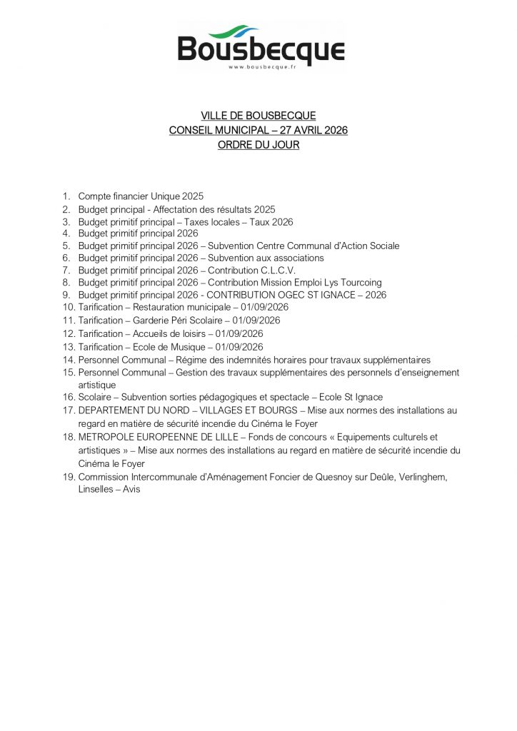 View Larger Image Ordre du jour Conseil Municipal Par Communication 1|2026-04-23T14:52:31+02:00avril 23rd, 2026|Votre Mairie|0 commentaire
