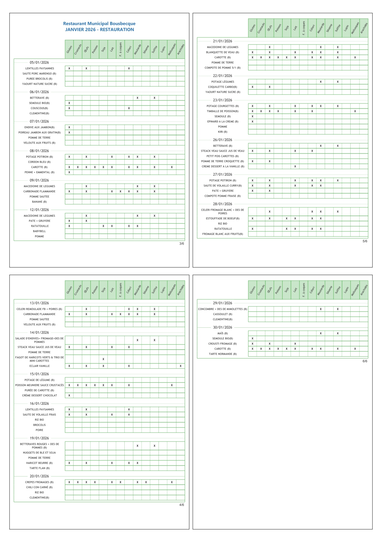 Les menus (établis en commission des menus)