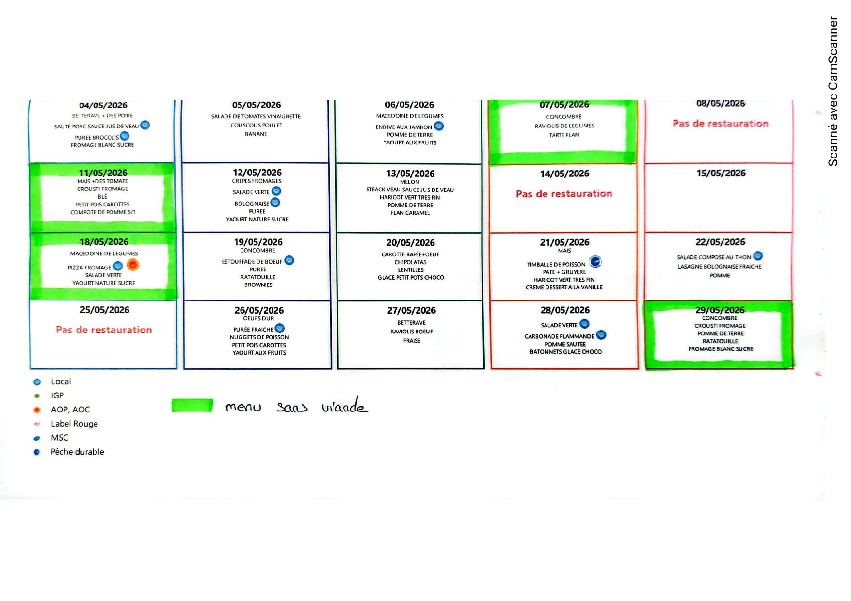 Etudier les menus proposés par le responsable du restaurant scolaire et proposer éventuellement des changements sous condition de leur recevabilité tant d’un point de vue diététique que technique.